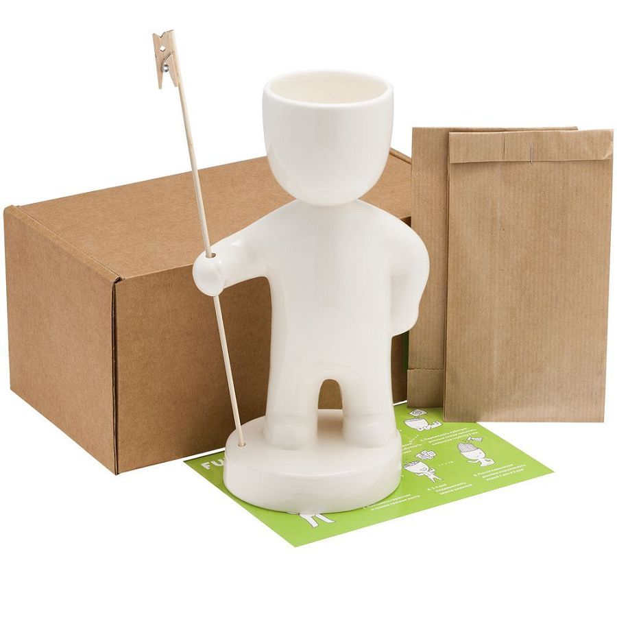 В комплекте фигурка, грунт, семена теневыносливой газонной травы и инструкция для посадки.