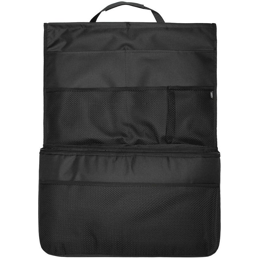 Органайзер защищает спинку сидения от загрязнений и позволяет компактно разложить все необходимые вещи. Найдется место для журналов, ручек и карандашей, очков, гаджетов, бутылки с водой и других необходимых в дороге мелочей. Вместительное термоотделение сохранит напитки или йогурты холодными, а бутерброды — горячими.Органайзер крепится за подголовник с помощью петли на липучке и фиксируется на спинке сиденья резинкой. Жесткие вставки не позволяют верхним углам провисать.