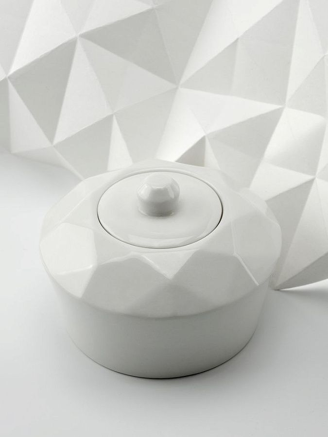Линейка столовой посуды Diamante Bianco — настоящий бриллиант коллекции Altavolo. Структура и пропорции граней сахарницы в точности повторяют верхнюю часть бриллианта классической огранки — корону. Присмотритесь — и вы увидите, как играет свет на молочно-белом фарфоре.Концепция и дизайн: Михаил Чистяков