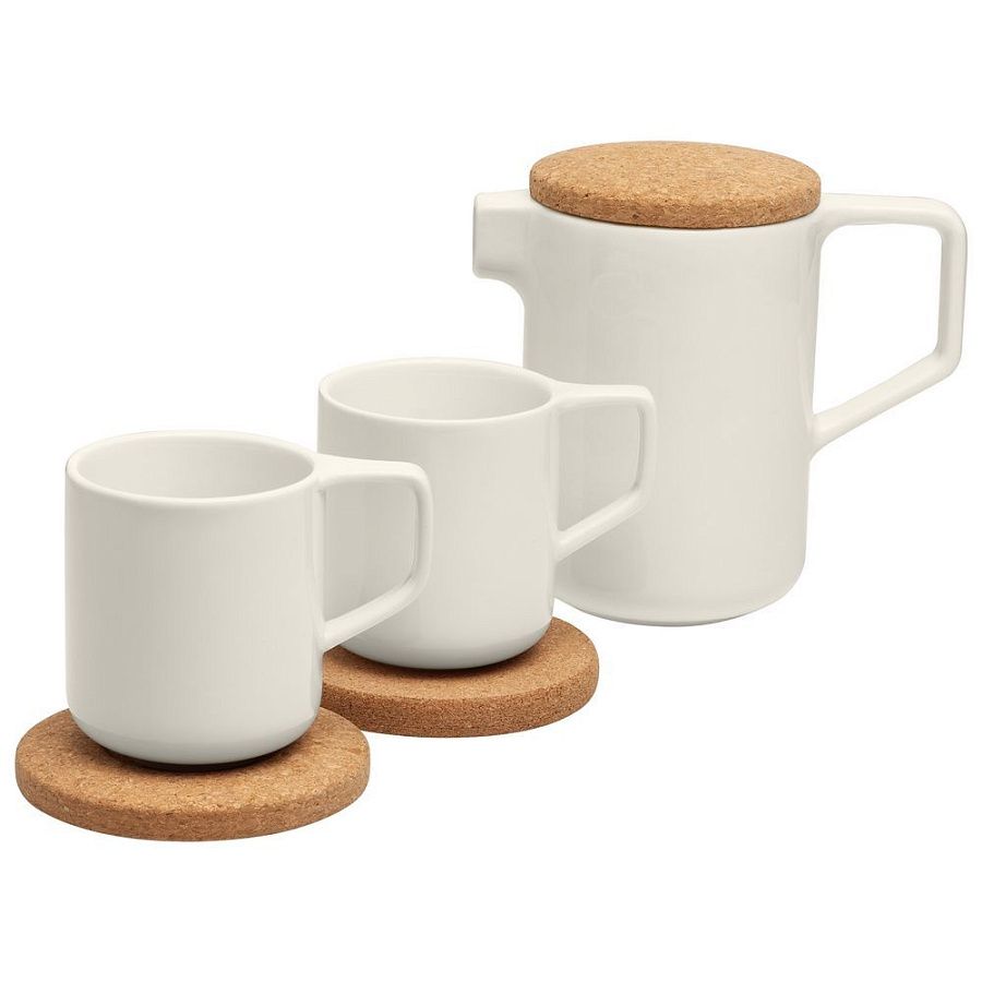 Отвлечься от повседневной суеты за чашечкой горячего чая или ароматного кофе особенно приятно с коллекцией Riposo. Продуманная функциональность и яркий контраст текстурной пробки и гладкого молочно-белого фарфора — для тех, кто следит за последними тенденциями и всегда выбирает комфорт.В набор входит: