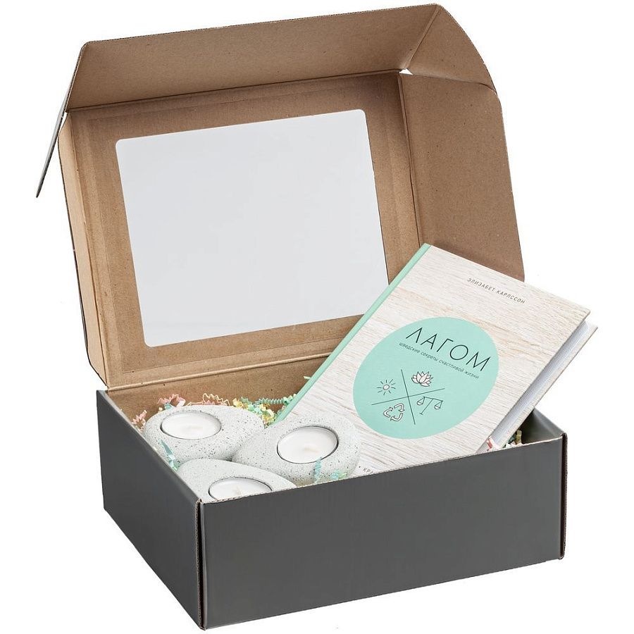 Самосборная коробка с прозрачным пластиковым окном.