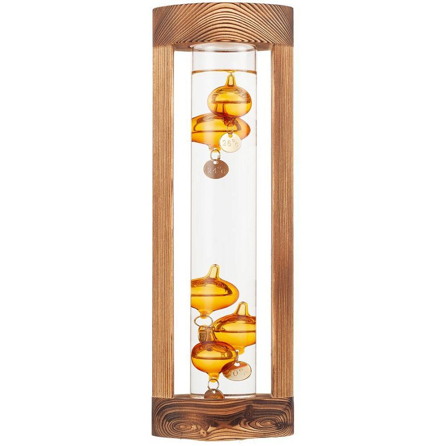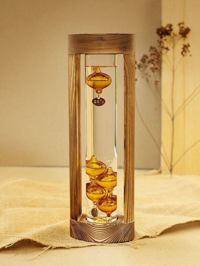 Любопытный термометр, изобретенный великим Галилео Галилеем, который первым обнаружил, что плотность жидкости увеличивается при снижении температуры и уменьшается при ее повышении.