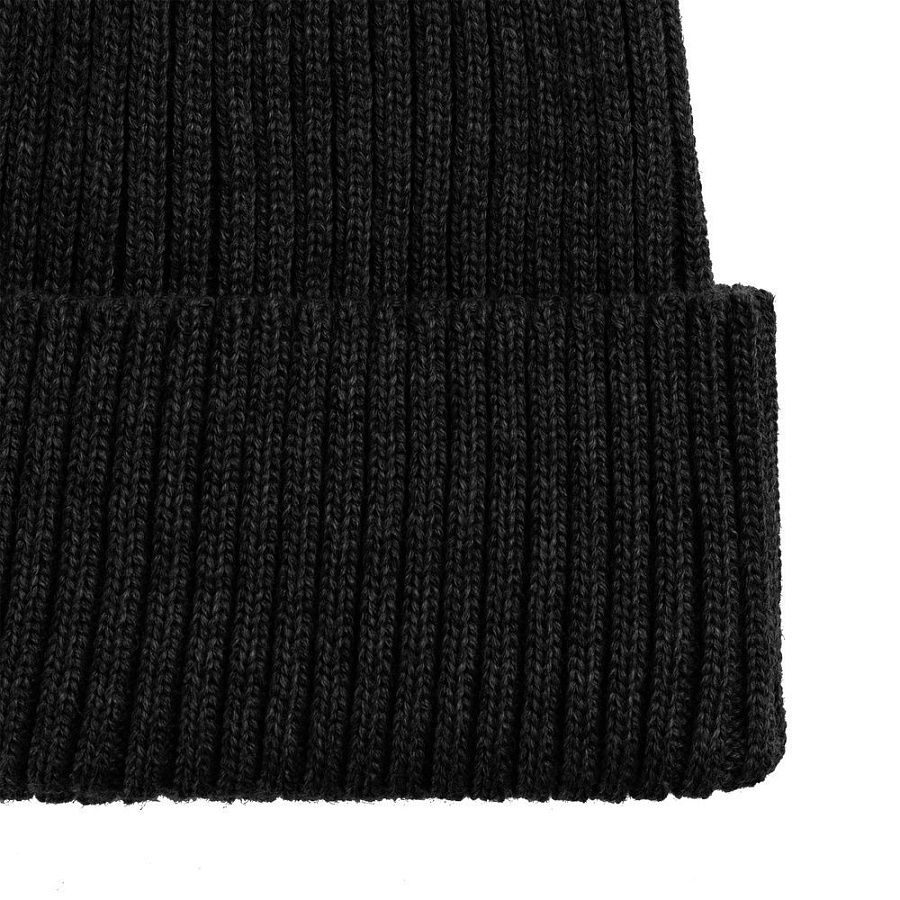 Металлический шильд с названием бренда расположен у заднего шва шапки. Это оставляет место спереди для пришива лейбла или шильдика с логотипом заказчика.