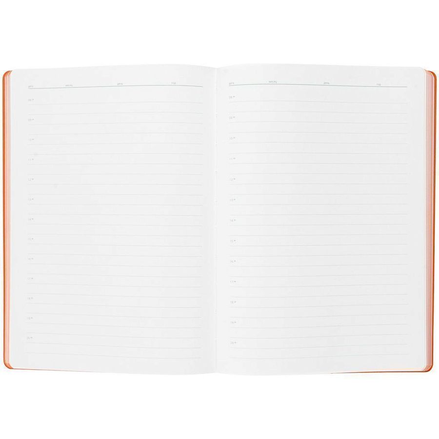 Гибкая обложка выполнена из материала Velour Melange, серый СС и Latte, оранжевый OO (внутренняя часть обложки). Внутри корешка — специальное место для крепления ручки размером до 15х0,9 см.