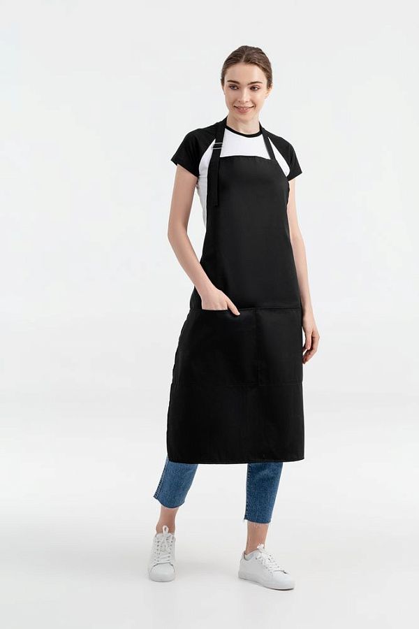 Фартук с регулируемой лямкой и двумя карманами. Глубина карманов 24,5 см.