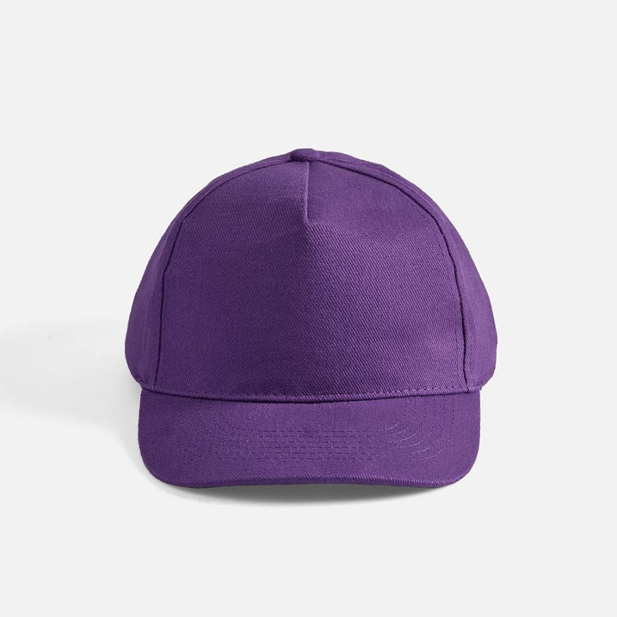 Модель бейсболки с 5-ю клиньями без лобового шва из плотного чесаного хлопка.