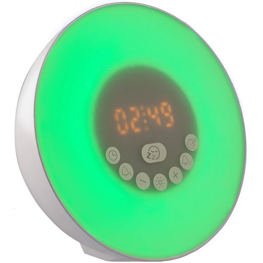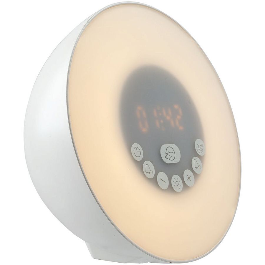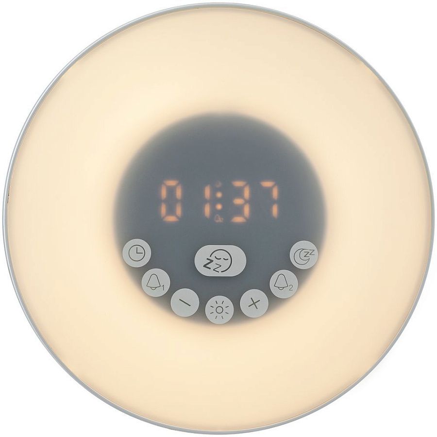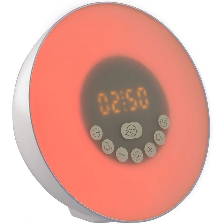 Лампа активируется за некоторое время до настроенного будильника и постепенно увеличивает яркость вплоть до момента, когда вы планируете окончательно проснуться. Эффект мягкого пробуждения можно дополнить звуками природы: шумом волн или пением птиц.