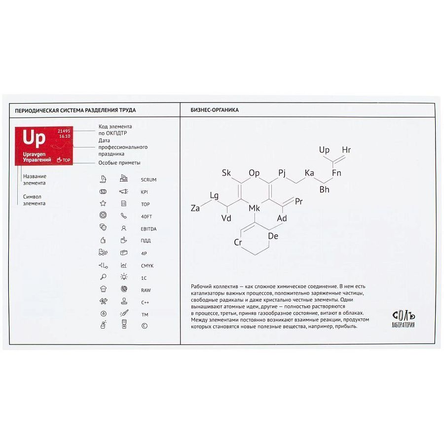 Рабочий коллектив — как сложное химическое соединение. В нем есть катализаторы важных процессов, положительно заряженные частицы, свободные радикалы и даже кристально честные элементы.