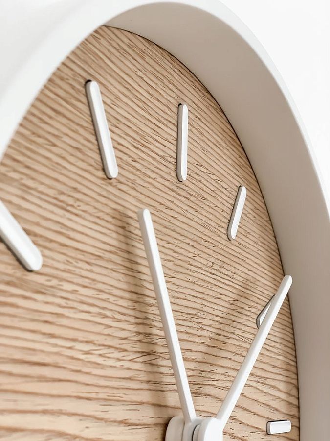 Рисунок дерева неповторим, поэтому настенные часы Kudo — это всегда уникальный природный узор в достойном обрамлении, позволяющем любоваться текстурой натурального материала.