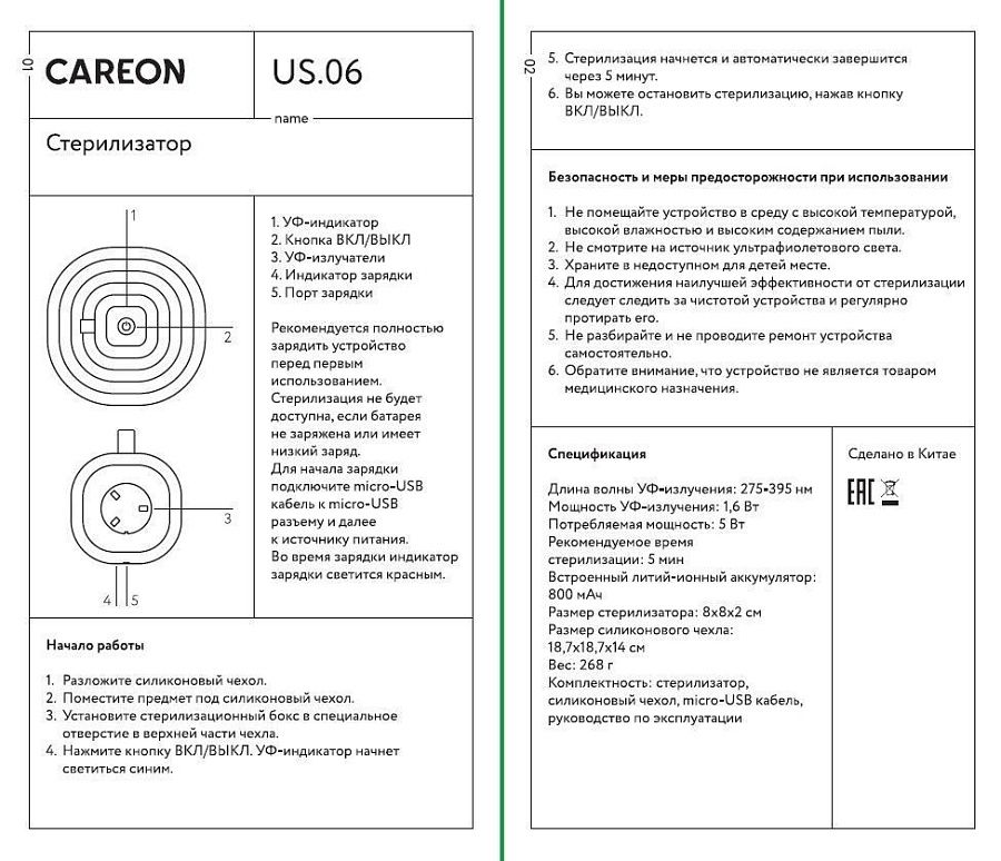 УФ-стерилизатор US06 может использоваться для дезинфекции смартфонов, ключей, монет, банкнот, ювелирных изделий, косметики и прочих мелких бытовых предметов из любых материалов.