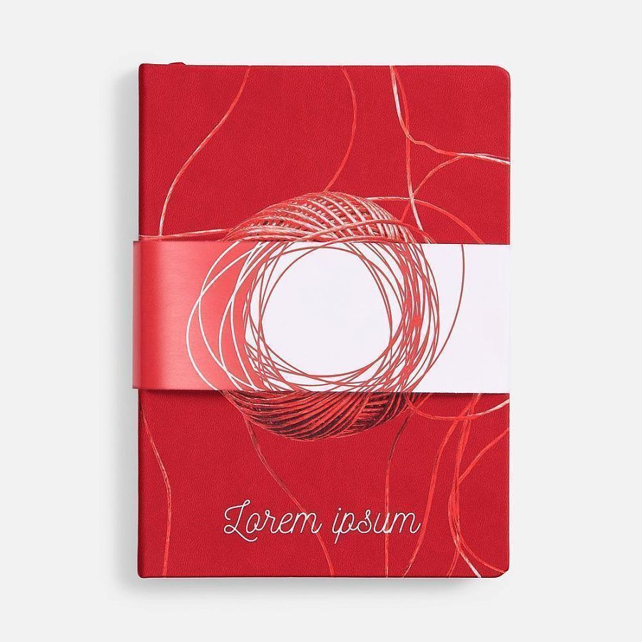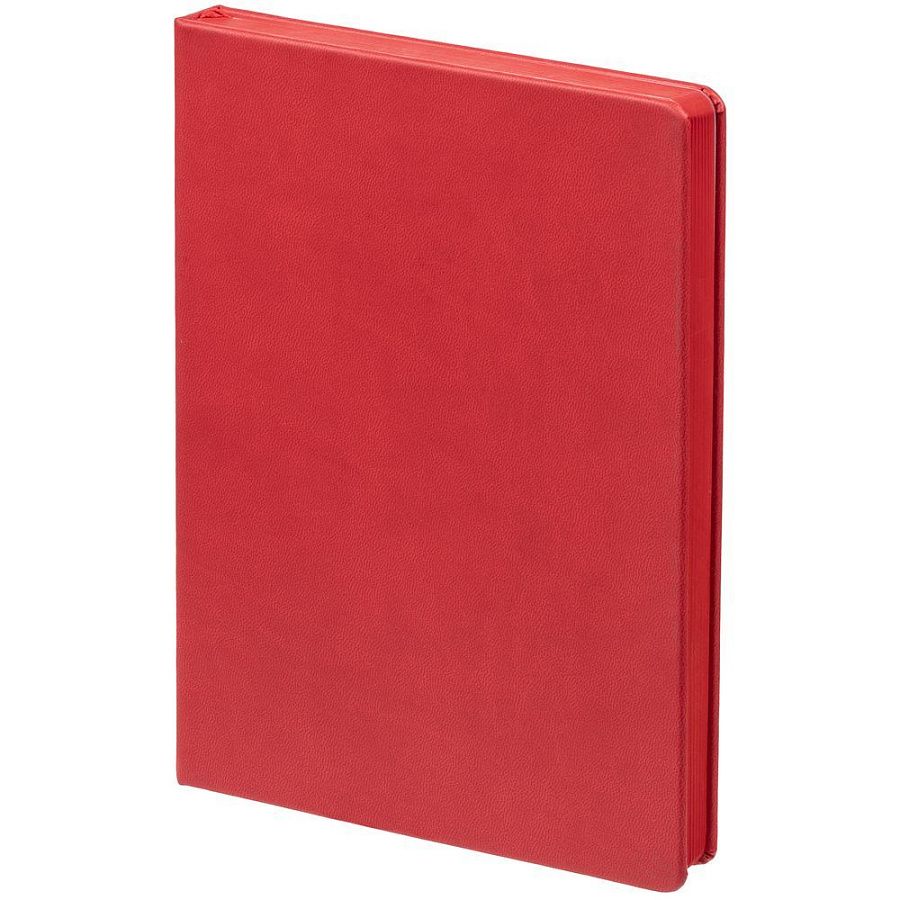 Ежедневник с твердой обложкой и тонированным обрезом. Выполнен из материала Latte, красный, дополнен ляссе в цвет обложки.