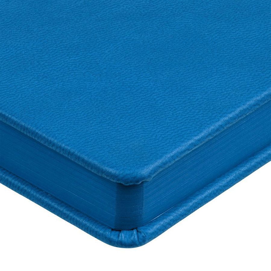 Ежедневник с твердой обложкой и тонированным обрезом. Выполнен из материала Latte, ярко-синий, дополнен ляссе в цвет обложки.