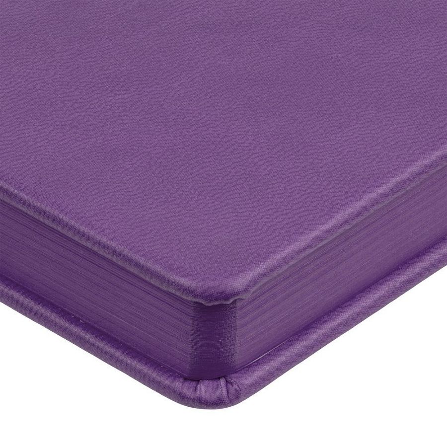 Ежедневник с твердой обложкой и тонированным обрезом. Выполнен из материала Latte, фиолетовый, дополнен ляссе в цвет обложки.
