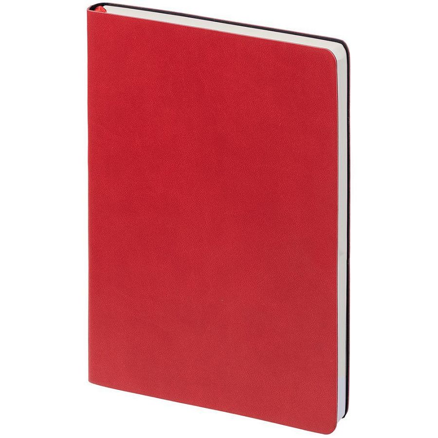 Ежедневник с гибкой обложкой, выполнен из материала Latte, красный, дополнен ляссе в цвет обложки.