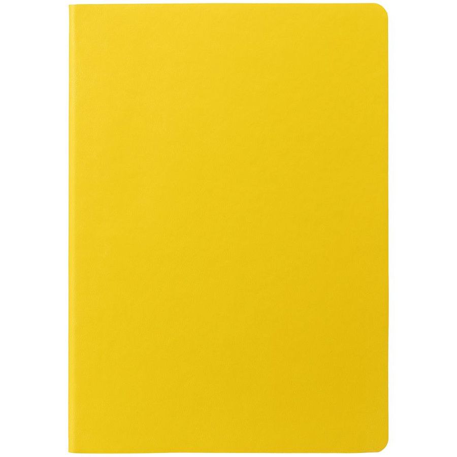 Ежедневник с гибкой обложкой, выполнен из материала Latte, желтый, дополнен ляссе в цвет обложки.