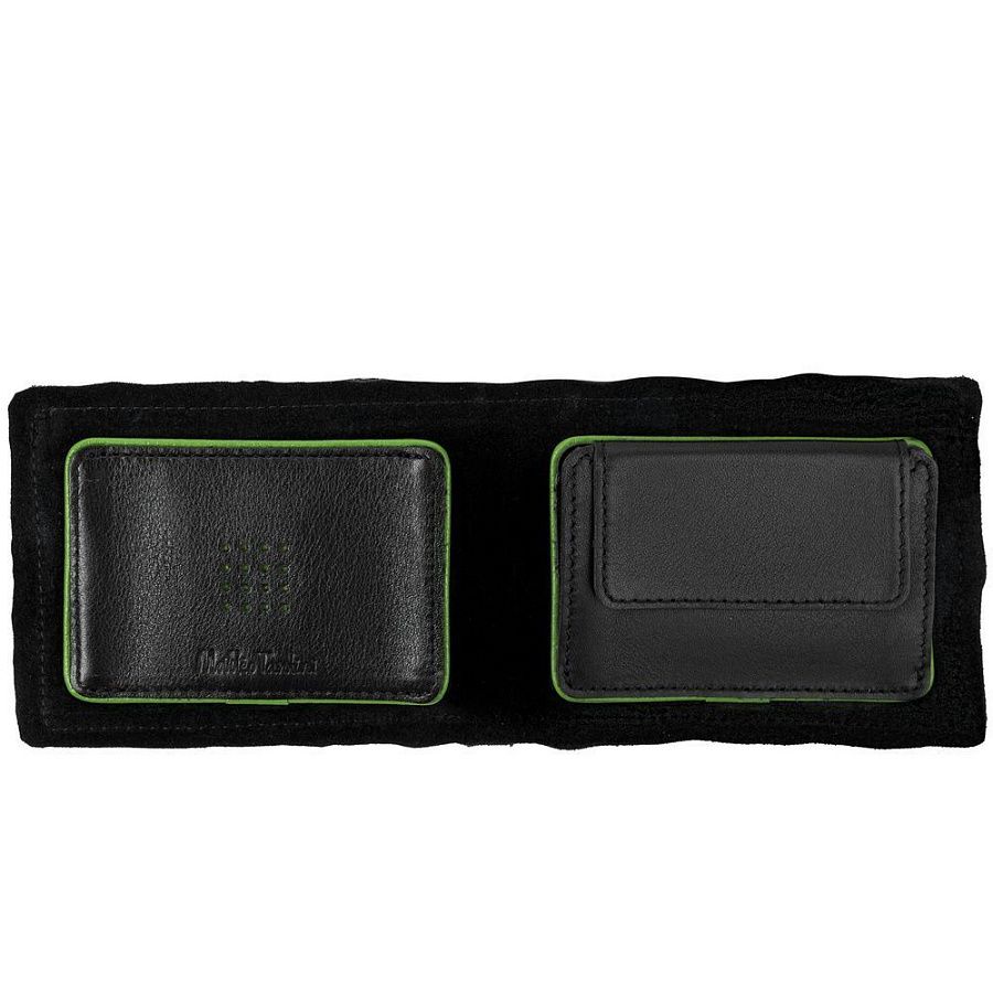 Натуральная кожа глубокого черного цвета и яркая контрастная окантовка — как страстная южная натура, сдержанная рамками условных приличий.