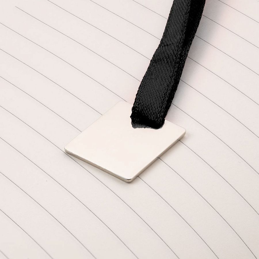 Ежедневник с гибкой обложкой, выполнен из материалов Soft Touch Pearl, черный АА, и Latte, черный (внутренняя часть обложки), дополнен ляссе в цвет обложки с металлическим шильдиком.