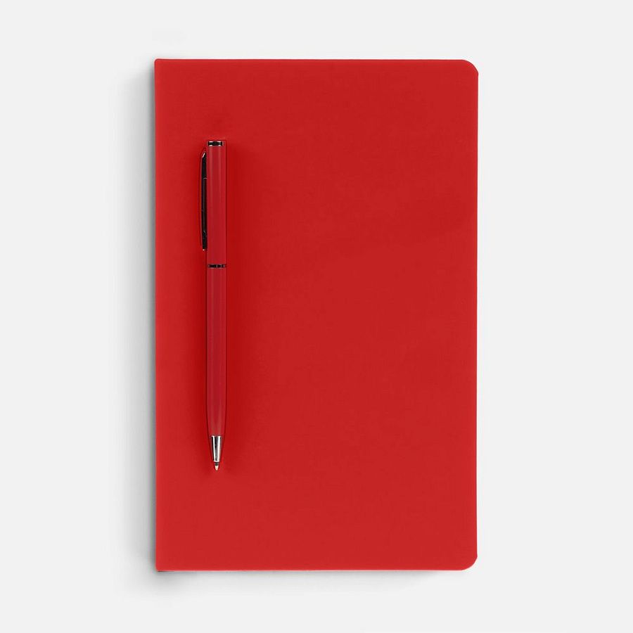 Ежедневник в твердой обложке, выполненной из материала Soft Touch Ultra, красный РР, дополнен цветным ляссе и магнитом, удерживающим ручку.