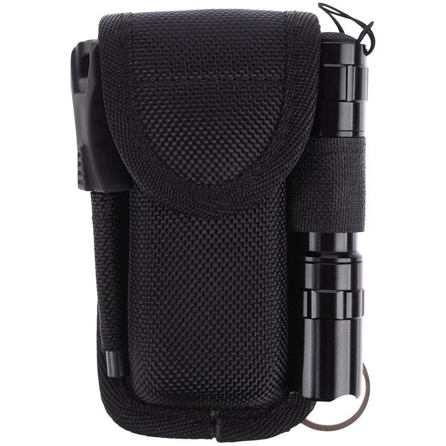В комплекте чехол, фонарик (20 лм, работает от 1 батарейки типа АА 1,5 В, в комплект не входит) и огниво.