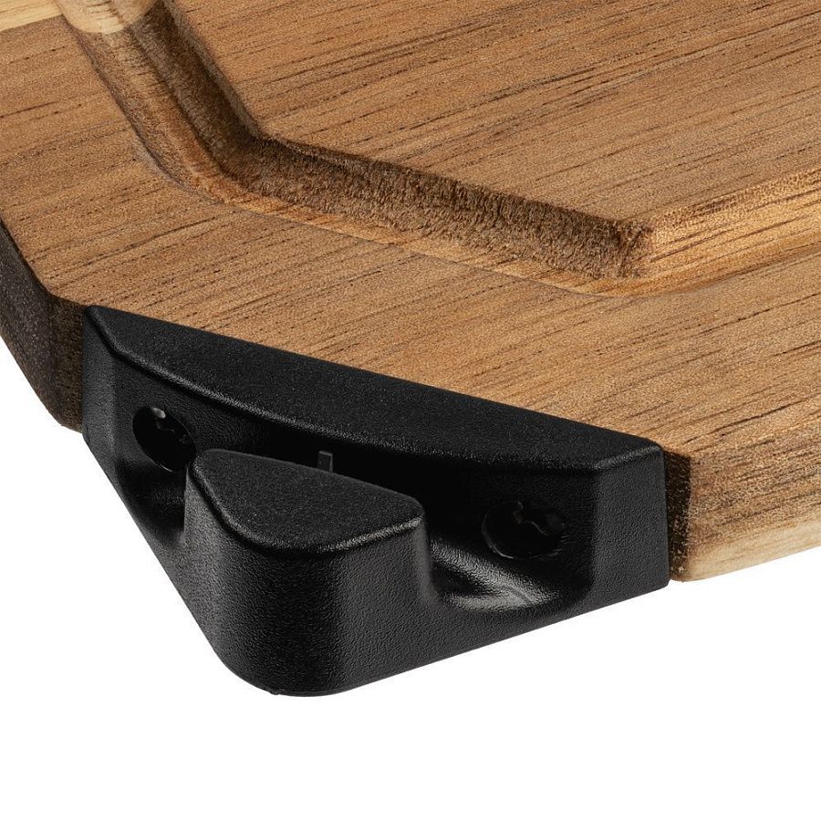 В угол доски встроена точилка для ножей, которой удобно пользоваться, не отвлекаясь от процесса готовки.Доска изготовлена из акации. Посуда из этого твердого и прочного материала долго не теряет внешний вид, не впитывает запахи и влагу, а живописная текстура делает каждый предмет неповторимым.