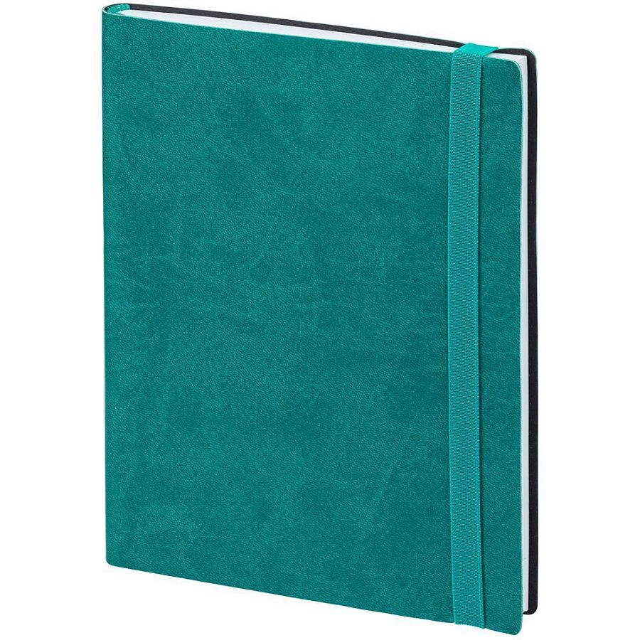 Ежедневник с гибкой обложкой, выполнен из материала Latte, синий НН, дополнен резинкой шириной 1 см, капталом и ляссе синего цвета.