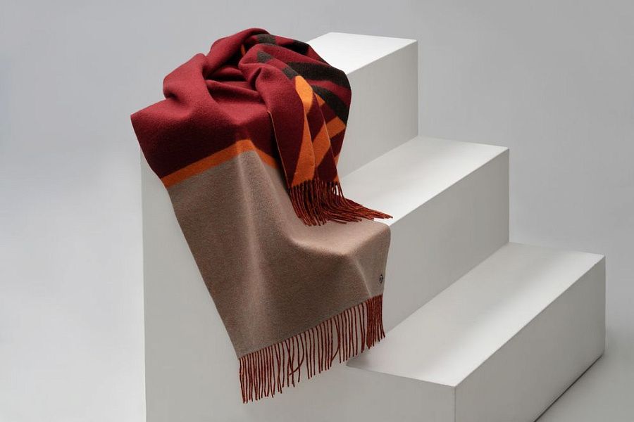 Объемный палантин Charming с геометрическим рисунком добавит строгому образу легкости и задора.