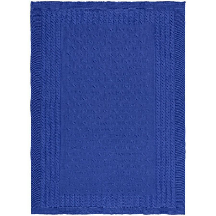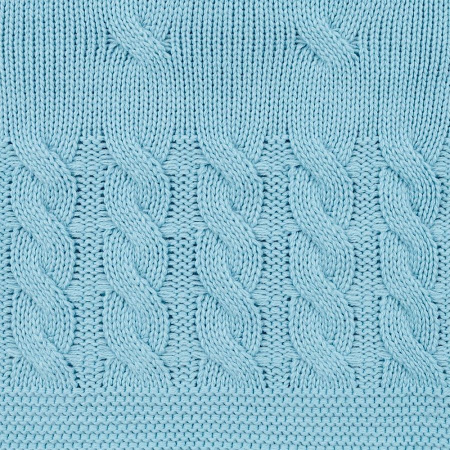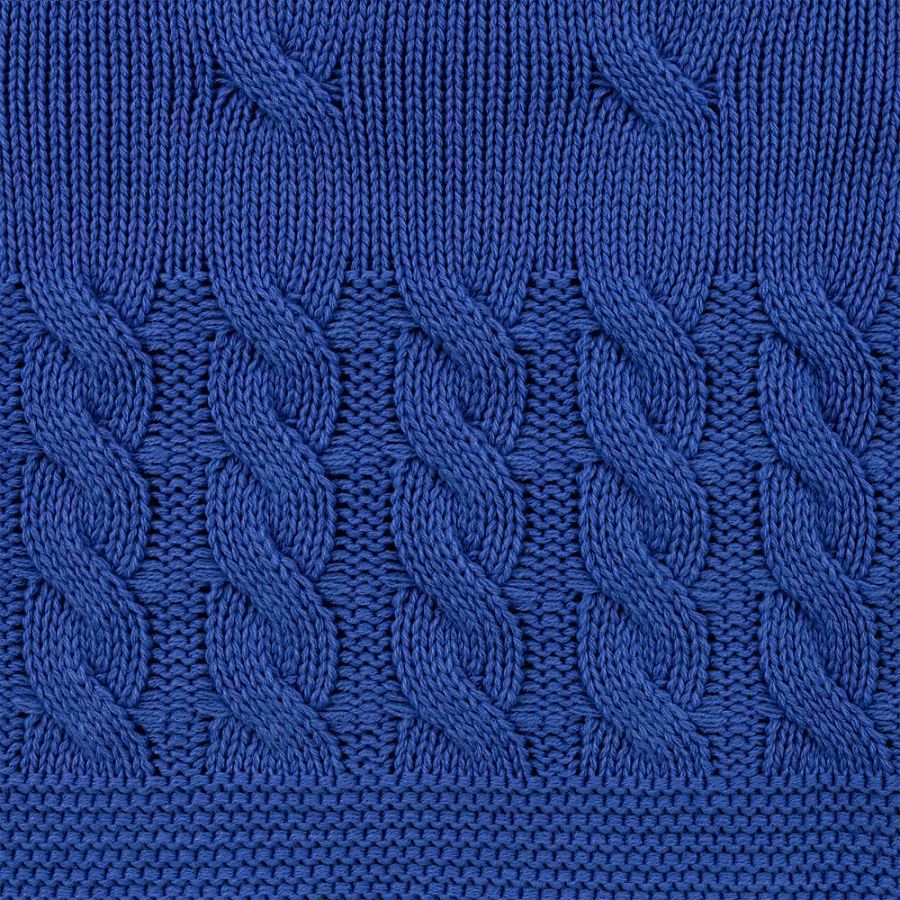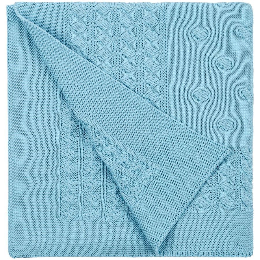 Модель: однотонный плед с фактурной вязкой, которая позволяет сделать его воздушным и объемным. Чередуя различные типы петель на гладком полотне, можно вывязать любую графику — логотип, текст, товарный знак.