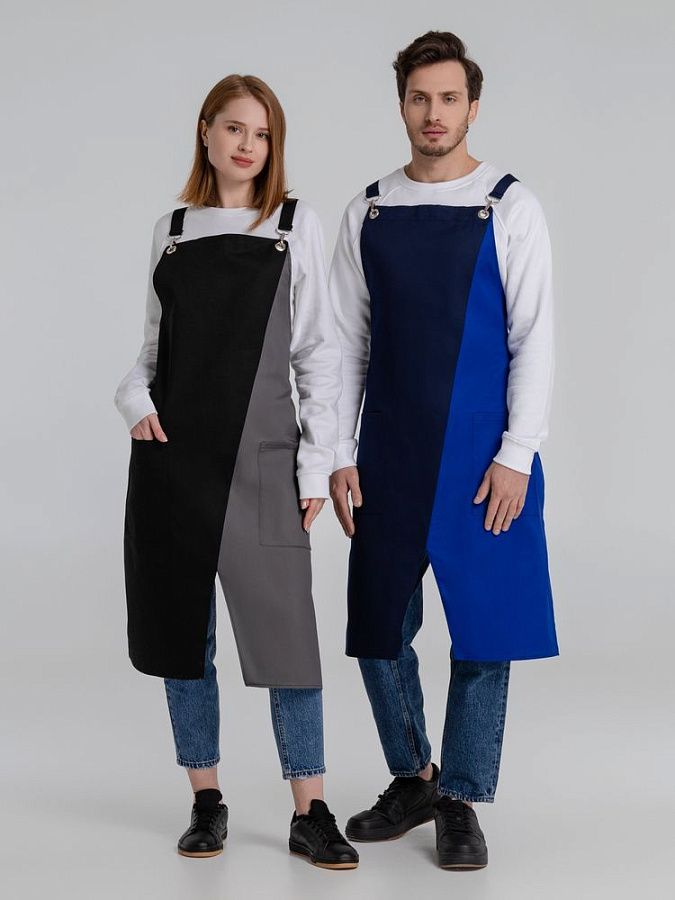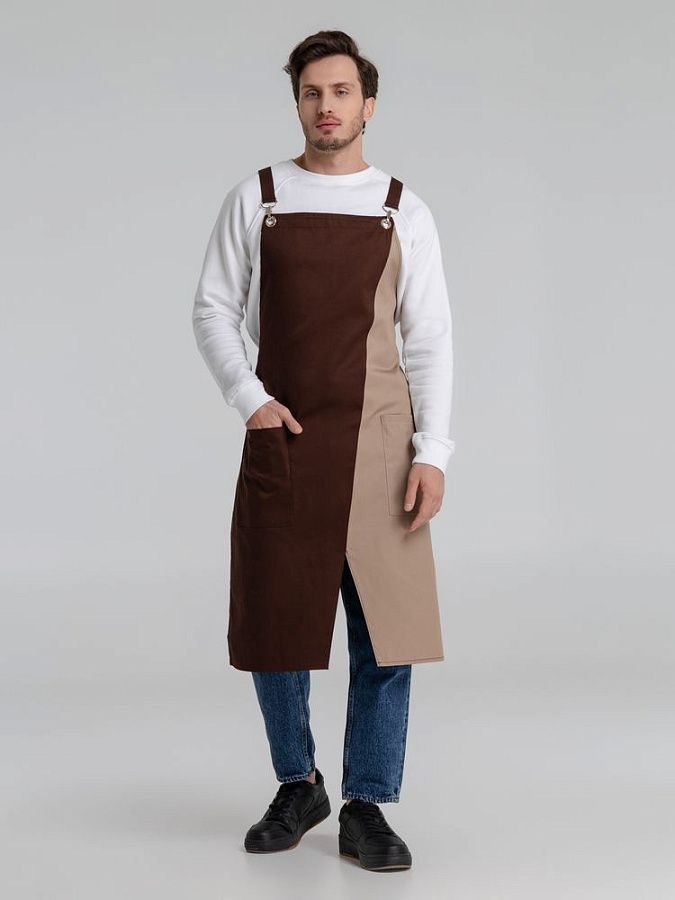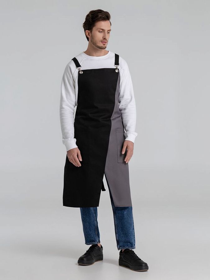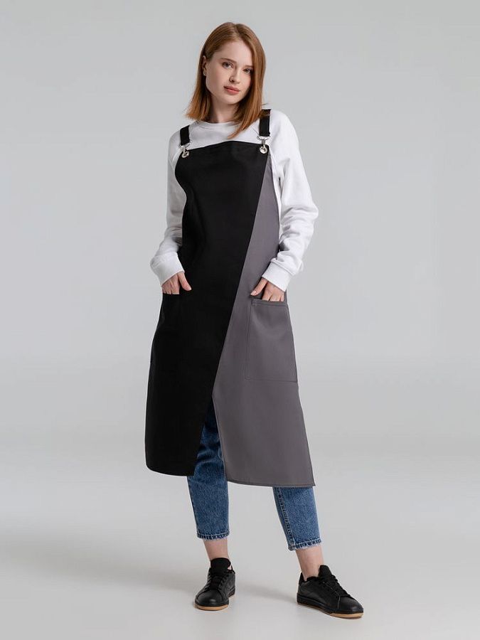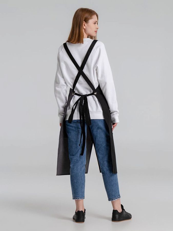 Фартук с длинными регулируемыми лямками и удобными карманами.