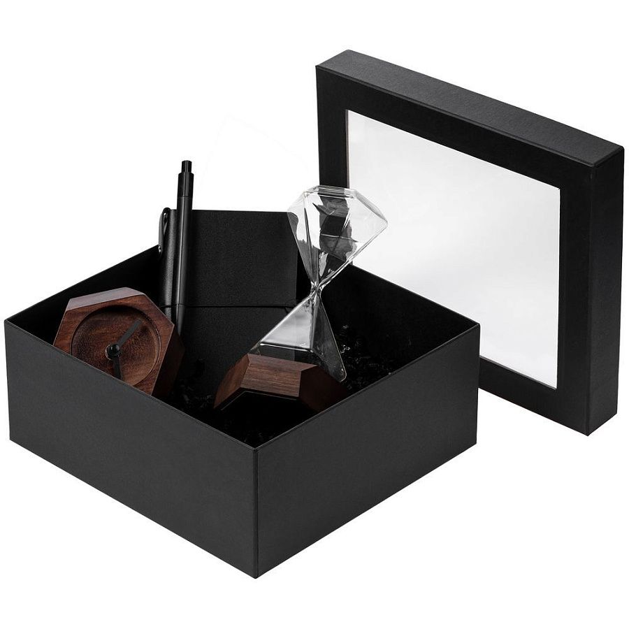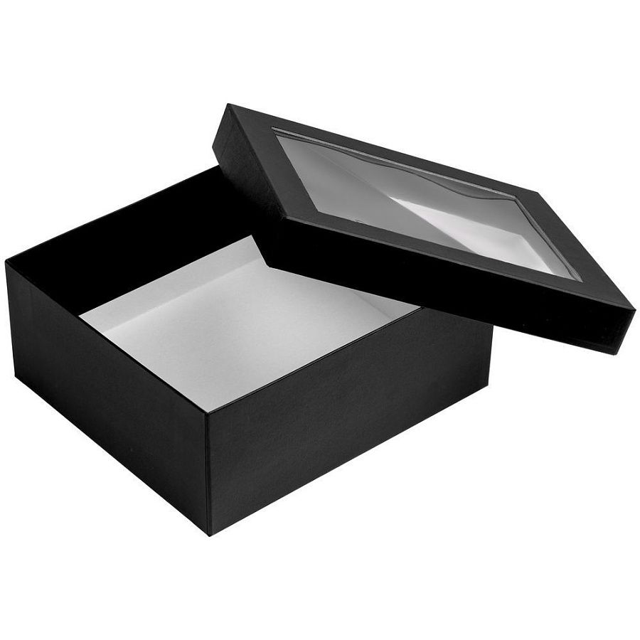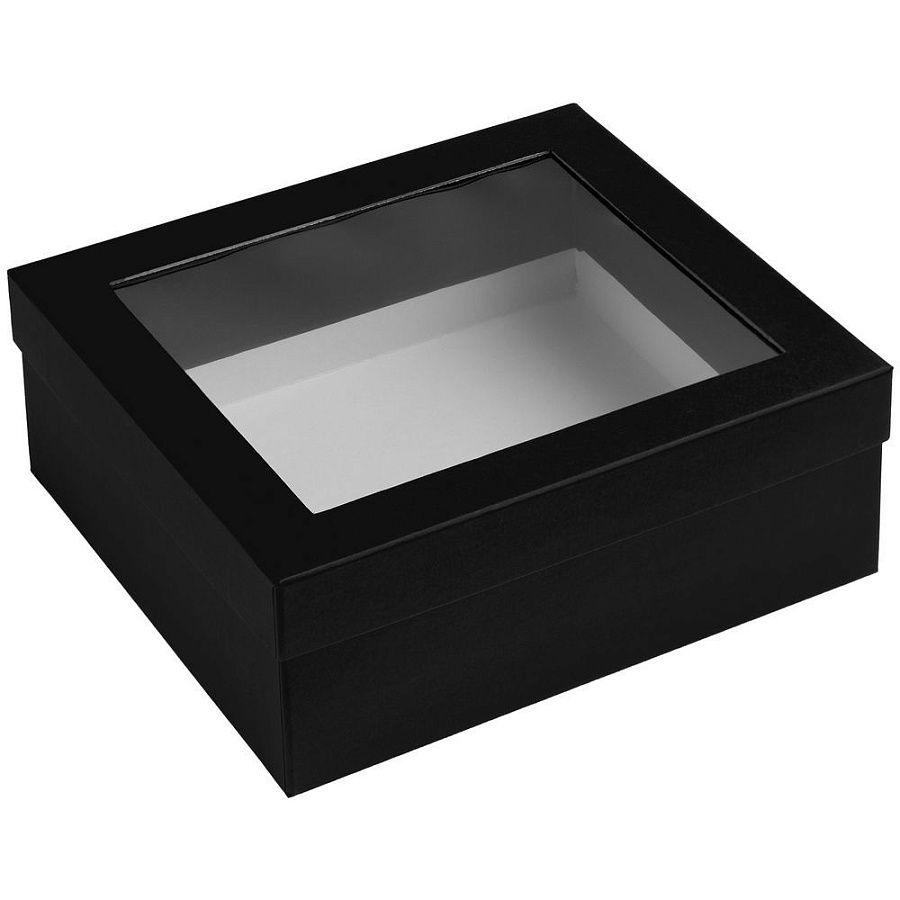 Коробка из переплетного картона с прозрачным пластиковым окном. Каширована дизайнерской бумагой Malmero.