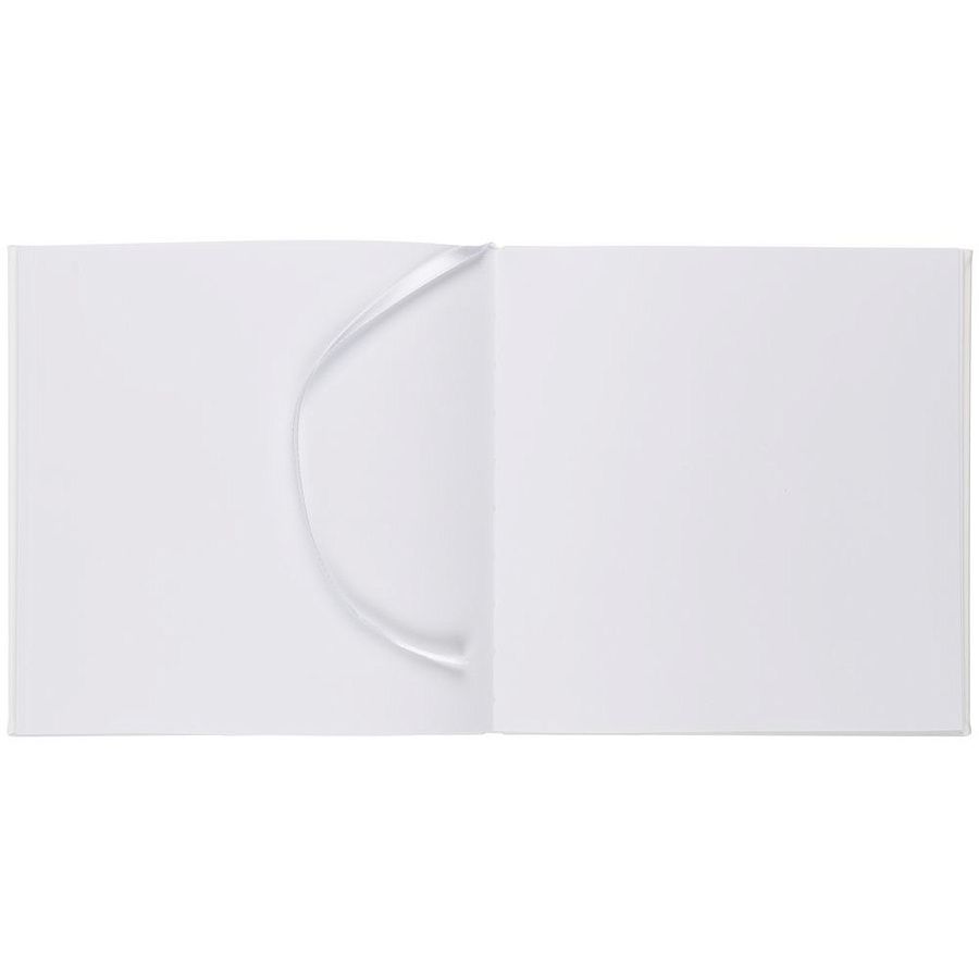 Скетчбук с твердой обложкой выполнен из материала Soft Touch, белый ВВ, дополнен ляссе в цвет обложки.