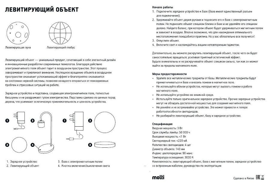 Левитирующая луна Moon Flow сочетает в себе элегантный дизайн и инновационные разработки современных технологов. Благодаря действию электромагнитного поля луна завораживающе парит в воздухе, мгновенно притягивая к себе заинтересованные взгляды.