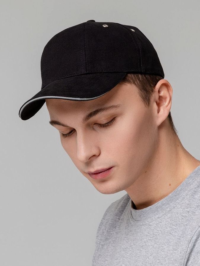 Модель: 6 клиньев без лобового шва, козырек-«сэндвич» со светоотражающим кантом, металлическая застежка и люверсы.