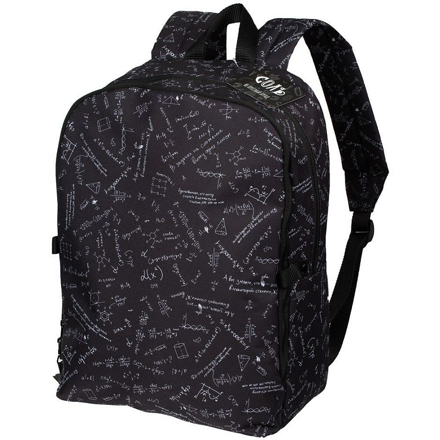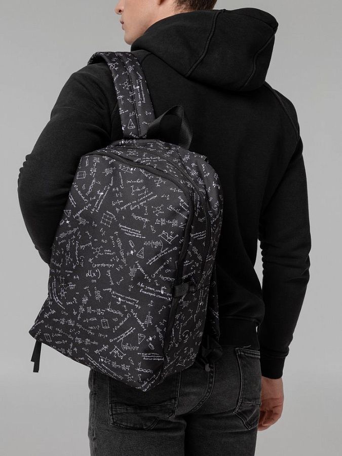 Рюкзак с девизом: «Единственное, что могу считать в математике, — считаю, что это не мое». Судя по размеру, вмещает энное количество вещей. Подтверждение этому можно находить снова и снова.