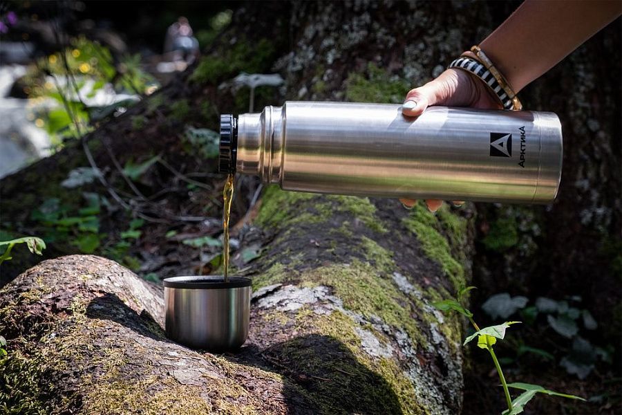 - Конструкция с двойными стенками и вакуумной изоляцией сохраняет температуру до 26 часов