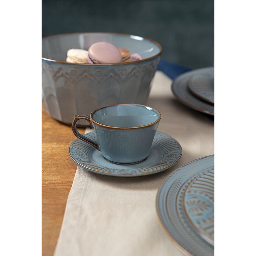 Набор чайных пар в элегантном дизайне украсит стол и разнообразит сервировку. Чашки и блюдца выполнены из высококачественного фарфора и покрыты реактивной глазурью, благодаря которой изделия приобретают неповторимую текстуру.