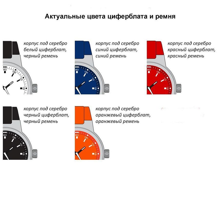 - Цвет циферблата (черный/белый/синий/красный/оранжевый).