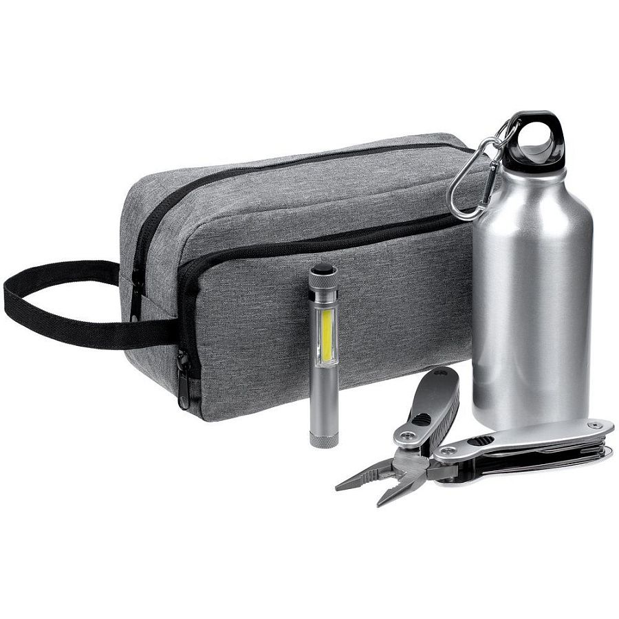 мультитул, фонарик, бутылка - алюминий; несессер - полиэстер
