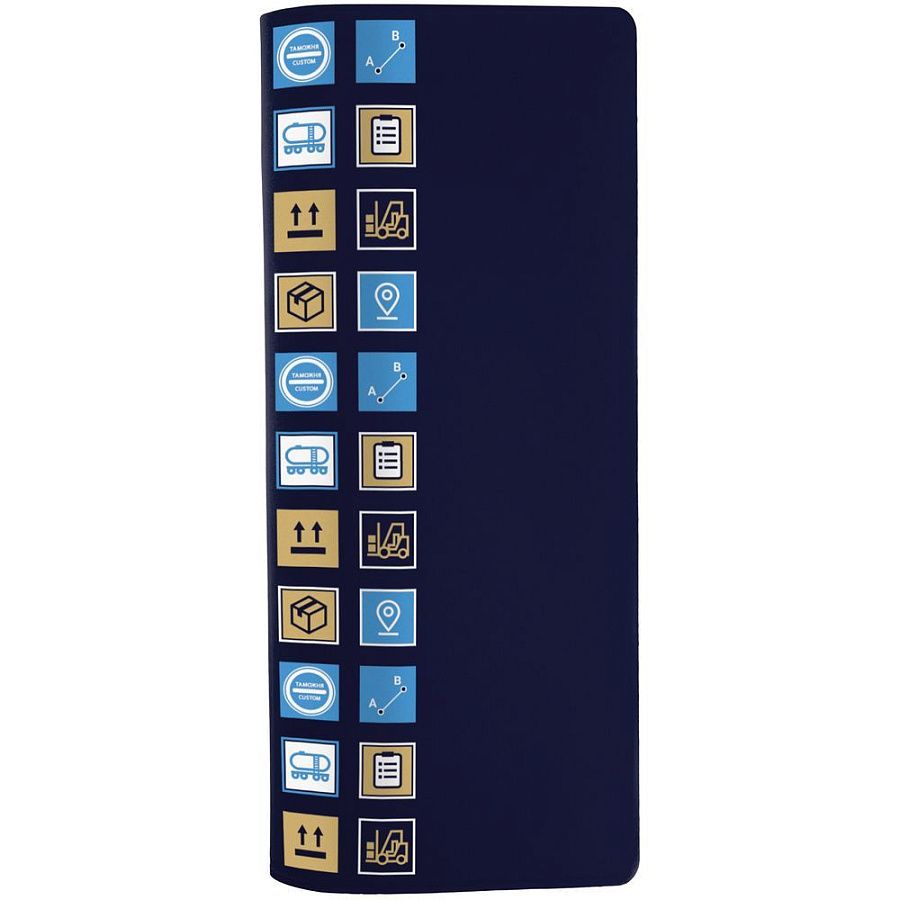 Прочный непромокаемый материал аксессуара сохранит важные документы сотрудника в деловой поездке, а минималистичный дизайн создаст особую эстетику. В каждой части общего рисунка изображены главные символы логистики.