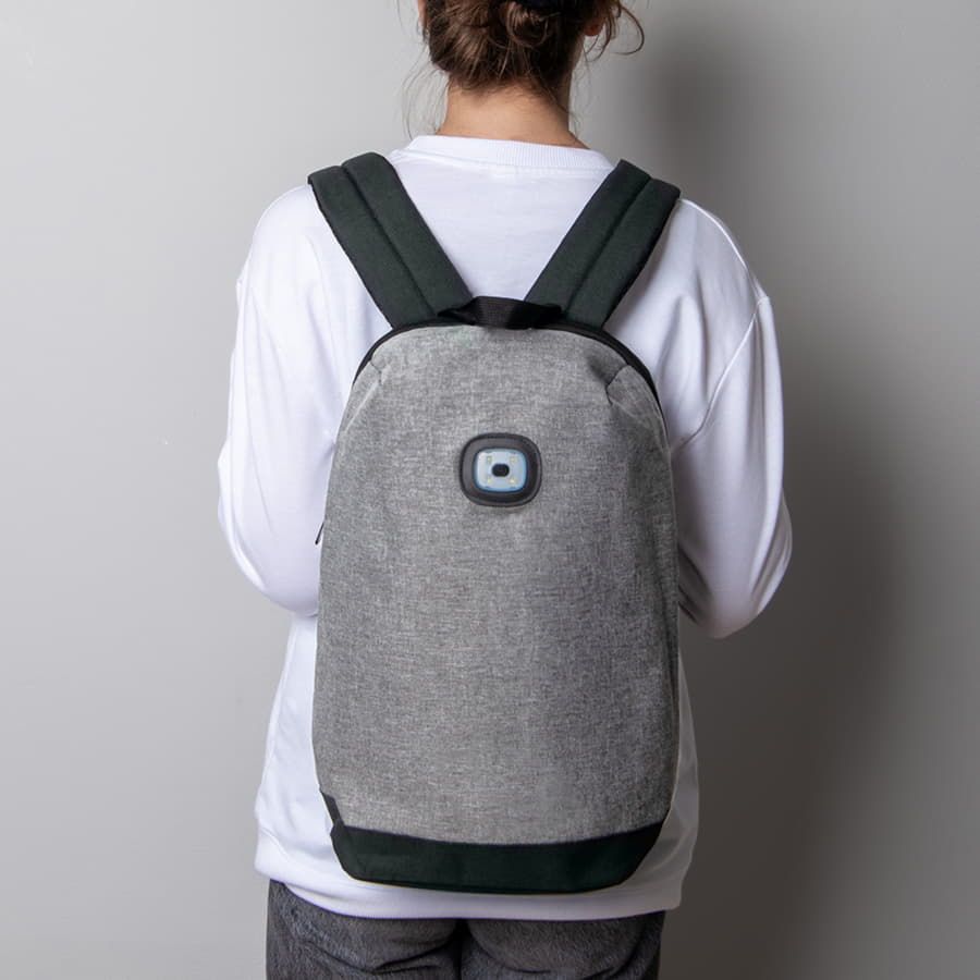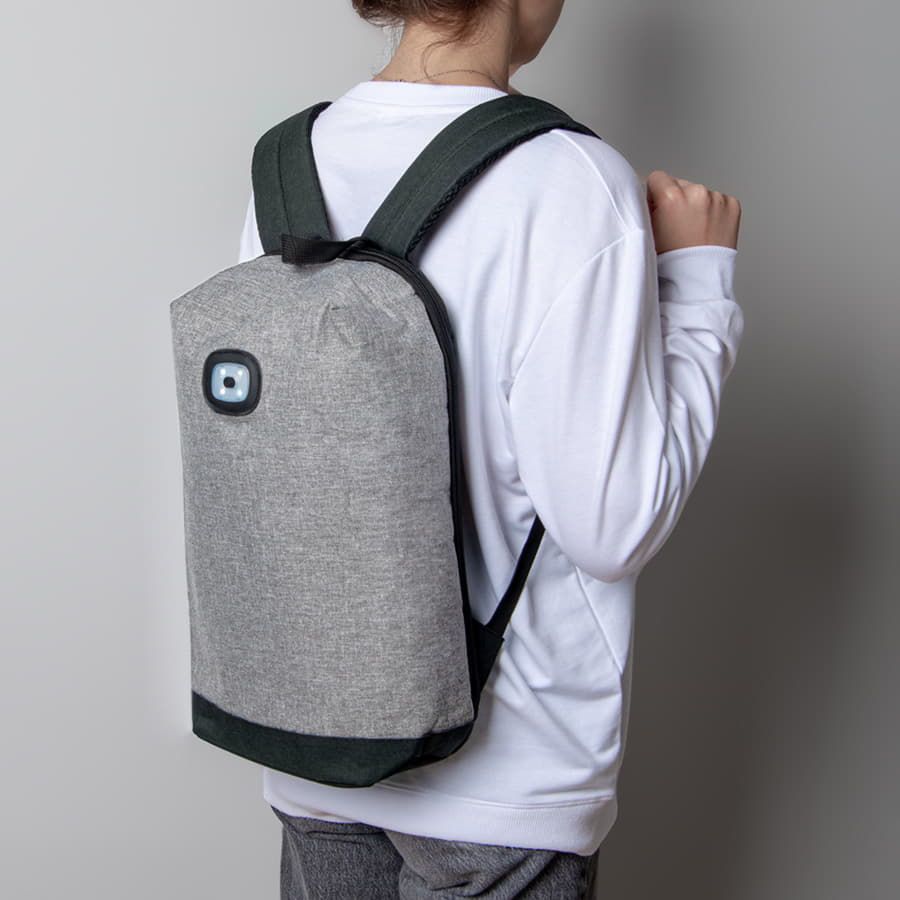 Универсальный рюкзак со световым индикатором выполнен из плотного 600 D полиэстера.