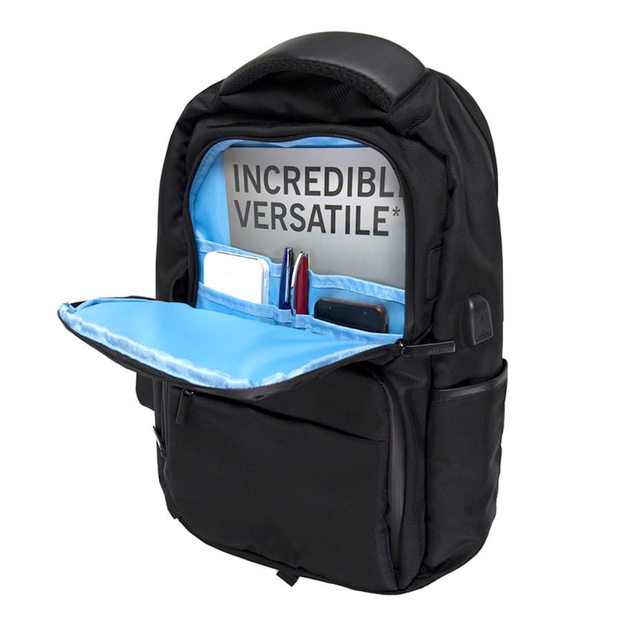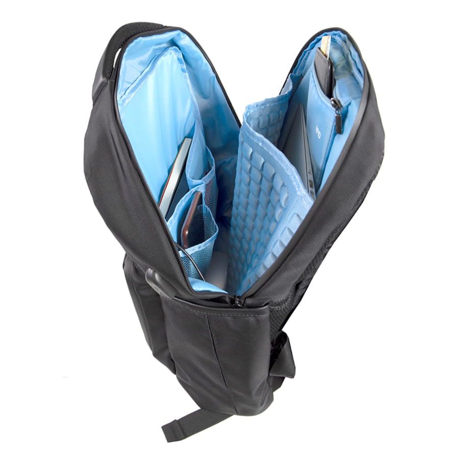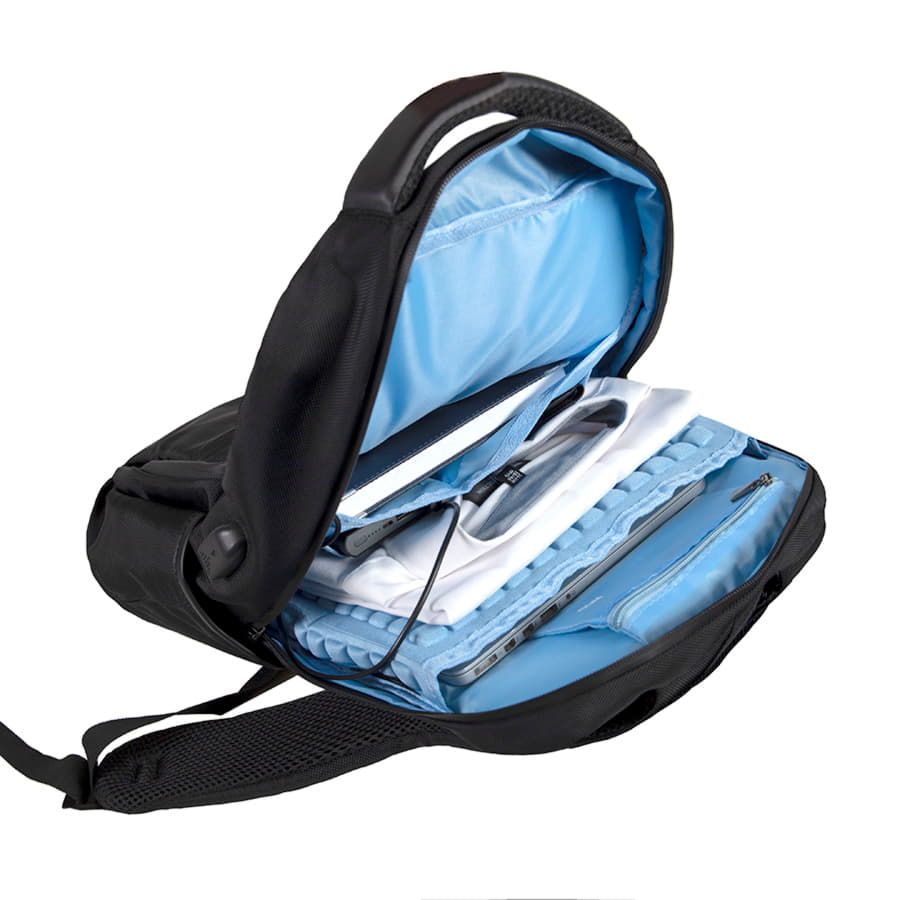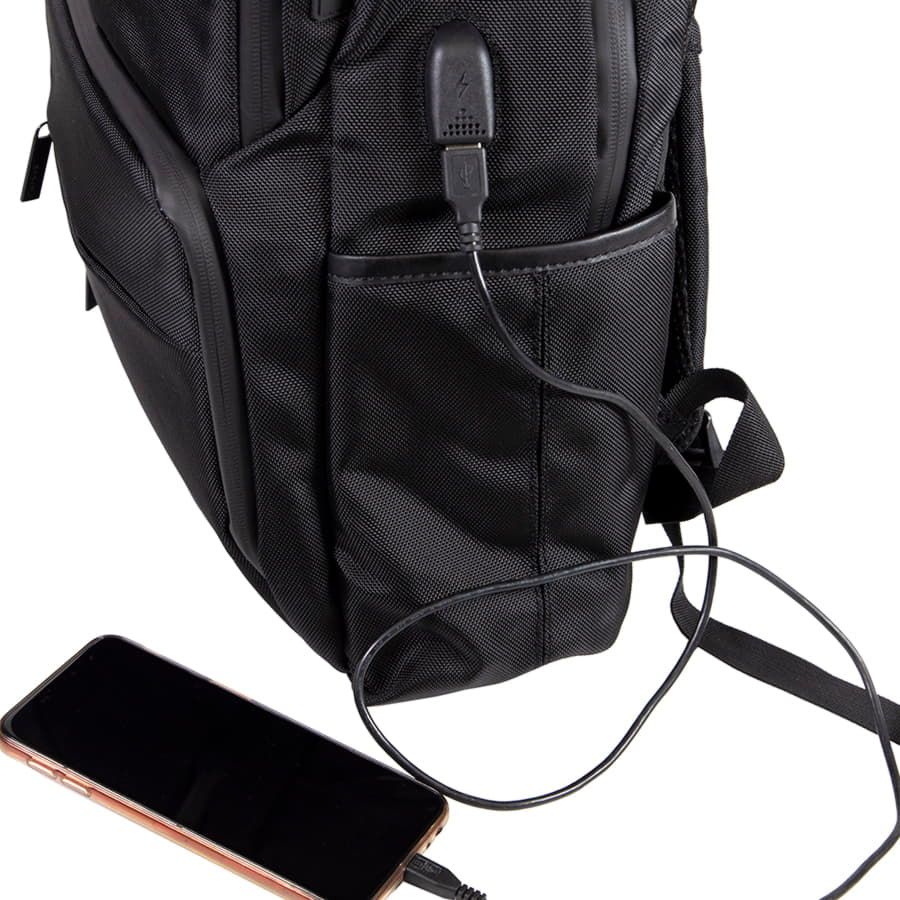 · USB порт для подзарядки вашего устройства (внутри рюкзака расположен кабель для соединения с power bank)