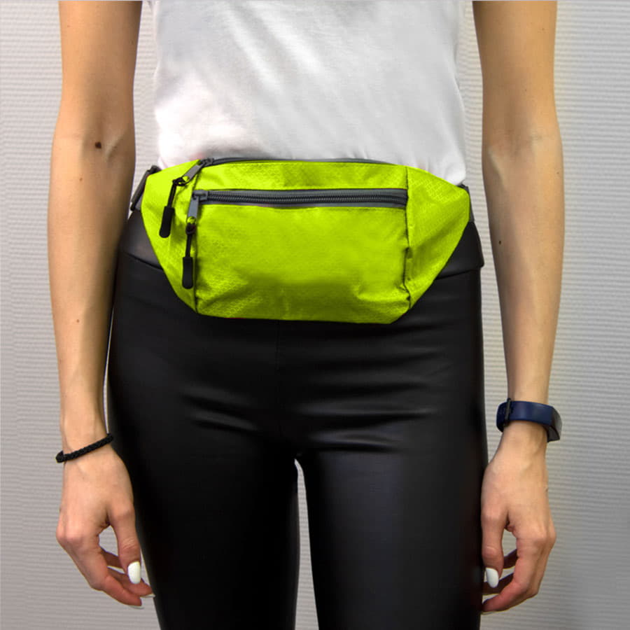 Поясная сумка из интересного материала рипстоп отлично подойдет для прогулок или занятий на свежем воздухе.