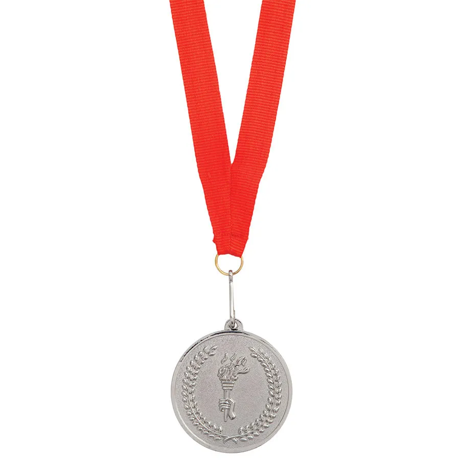 Медаль наградная на ленте "Серебро"; размер: длина ленты - 48 см., D=5см.материал: текстиль, металл