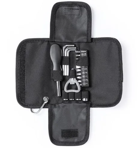 Набор инструментов из 19 аксессуаров в чехле из полиэстера с застежкой-молнией.