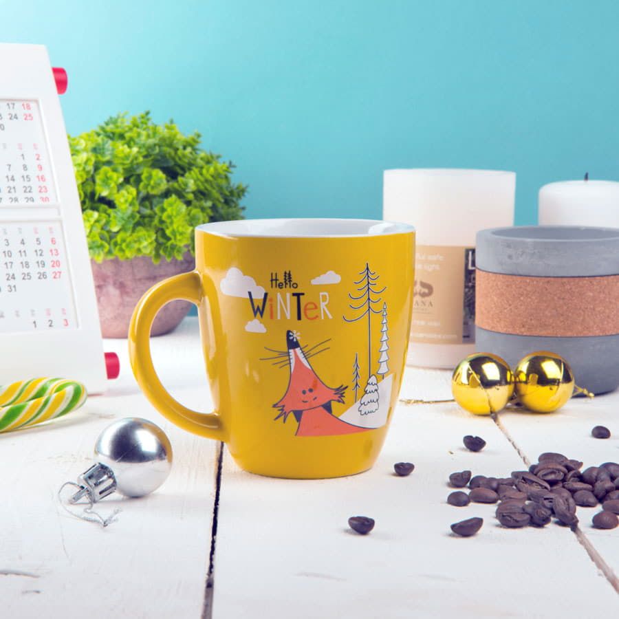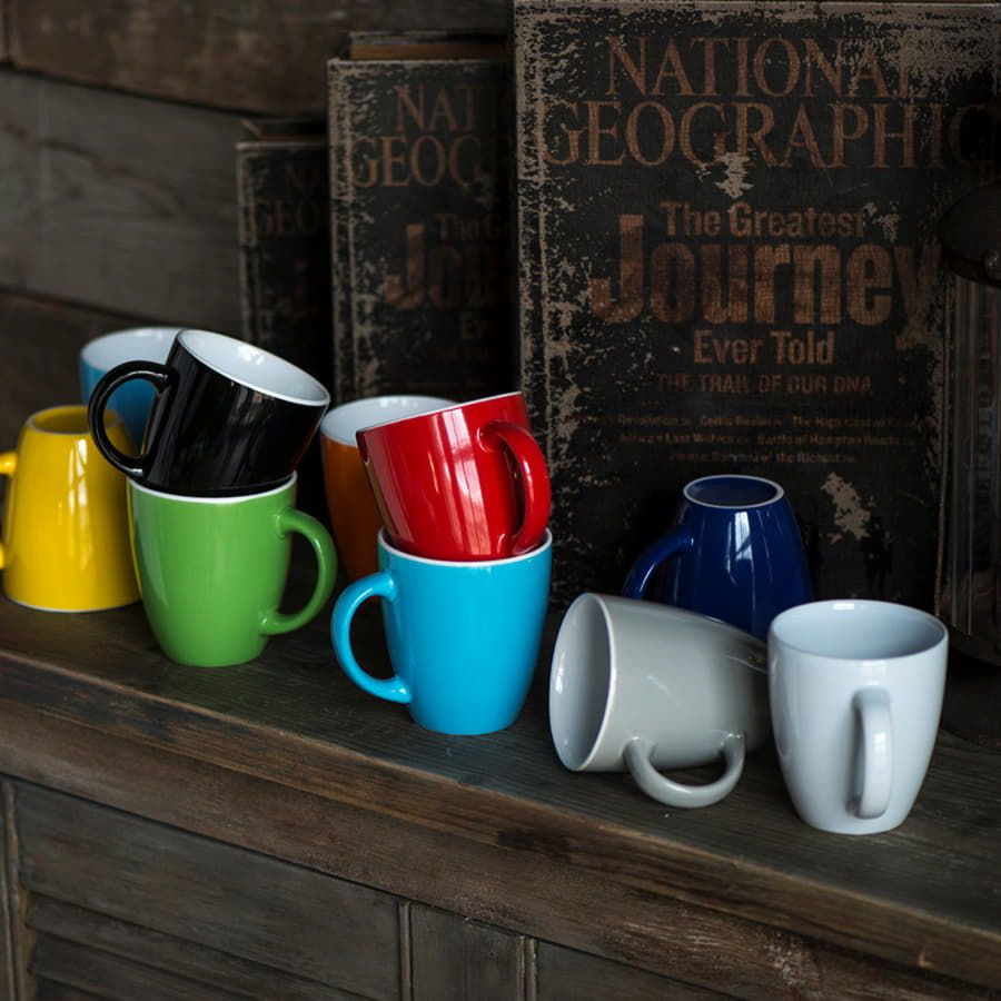 Широкая линейка цветов от строго черного и нежного белого до стильного оранжевого и глубокого красного, цветное глянцевое покрытие снаружи и белый цвет внутри, небольшая емкость (310 мл) делают ее идеальным решением любой маркетинговой задачи.