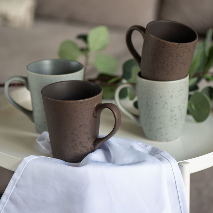 Рисунок покрытия кружки имитирует натуральный камень с небольшими вкраплениями.