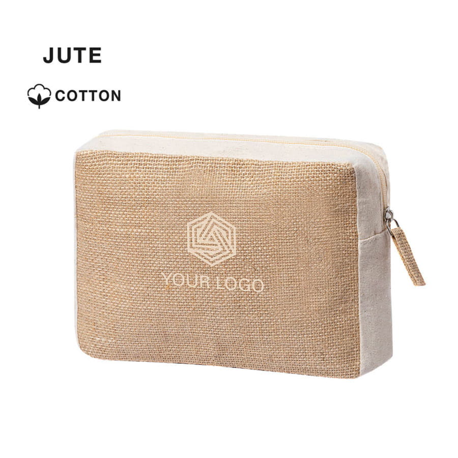 Косметичка из ламинированного джута и натурального хлопка. С застежкой-молнией и джутовым пулером.