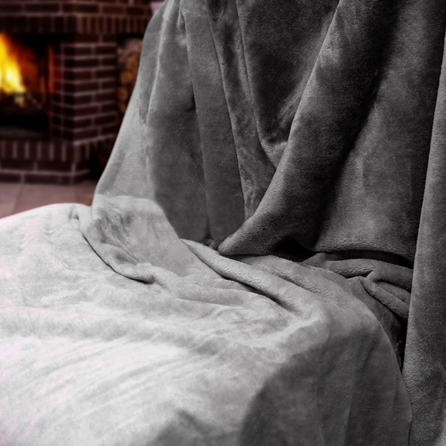 Плед окрашен градиентом - плавный переход от светло-серого к темно-серому оттенку.