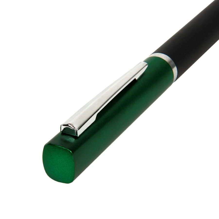 Верхняя часть корпуса в сечении плавно принимает форму прямоугольника со скругленными углами. Металлические кольцо и клип подчеркивают изящный силуэт ручки.