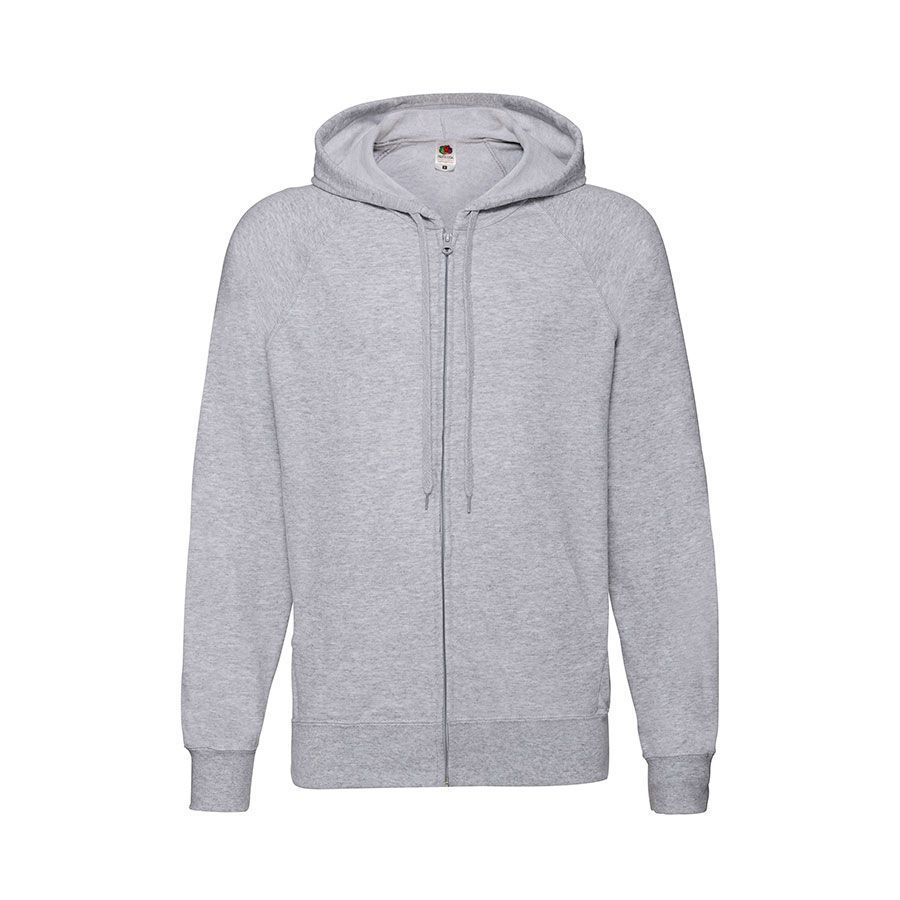 Футровая ткань без начеса. Капюшон с плоским вытяжным шнуром в тон изделия. Скрытая пластиковая молния для нестандартной печати. Два передних кармана. Рукава-реглан.