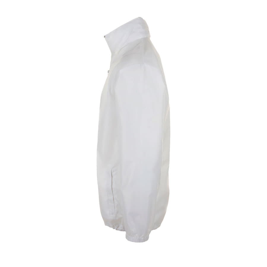 Легкая ветровка унисекс с облегченной пластиковой молнией. Воротник с убирающимся капюшоном. Эластичные манжеты на резинке.